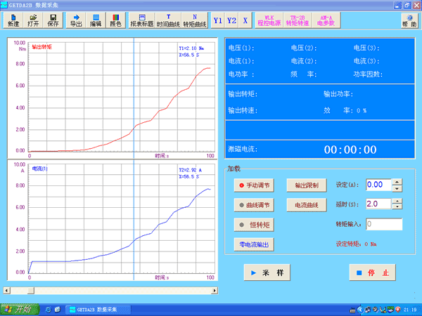 1. 系統(tǒng)通過1臺相位差式轉(zhuǎn)矩轉(zhuǎn)速傳感器及1臺TR-1C轉(zhuǎn)矩轉(zhuǎn)速采集儀(或TR-1D轉(zhuǎn)矩轉(zhuǎn)速采集儀)采集檢測電機的輸出轉(zhuǎn)矩和轉(zhuǎn)速;用1臺AM-A型電參數(shù)采集儀采集檢測電機的輸入電壓、電流、功率因數(shù)、頻率等參數(shù);用1臺TEM-2溫度采集儀檢測溫升;用WLK-3B程控電源控制磁粉制動器對電機進行加載。 |